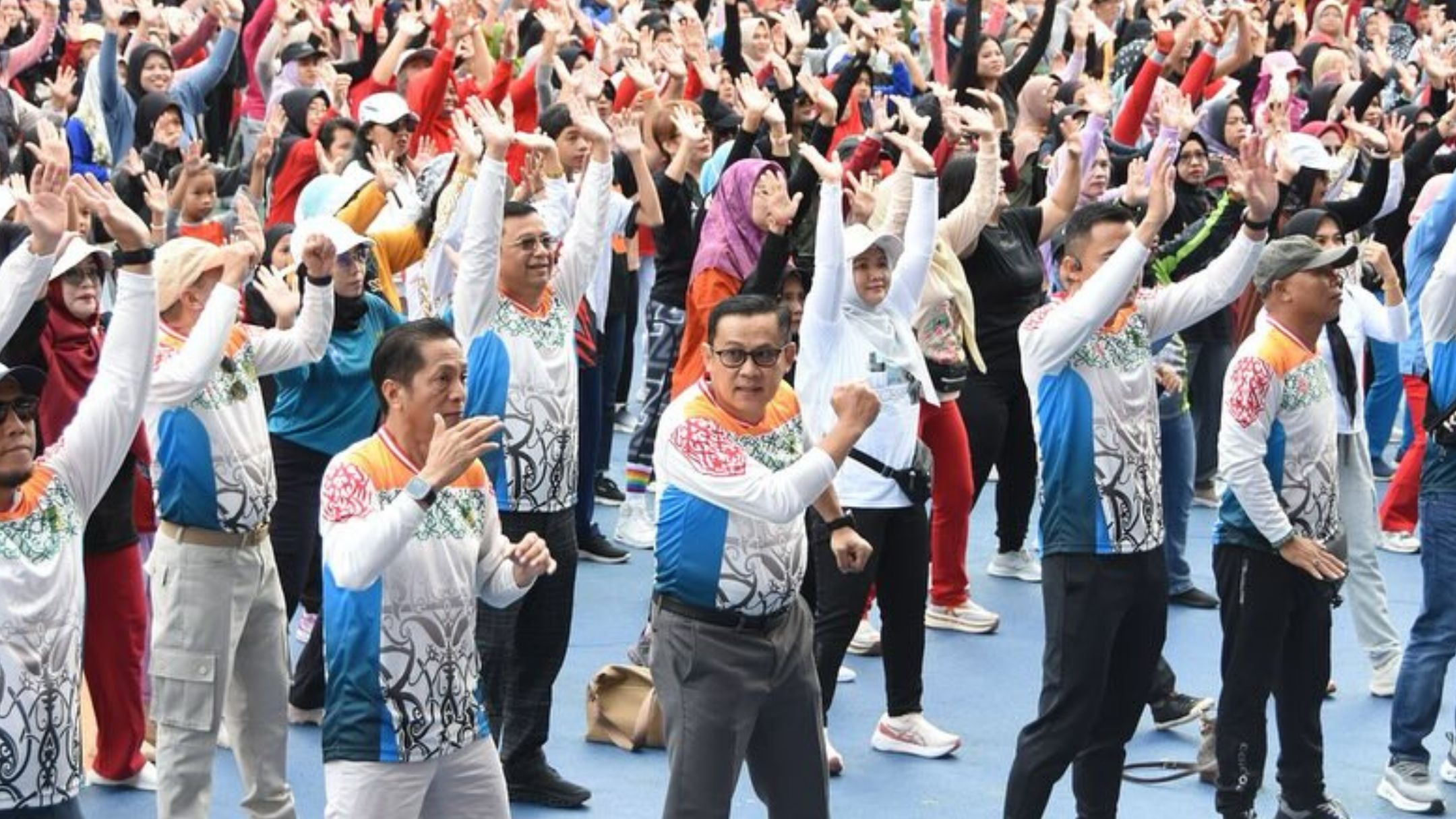 Acara dimulai dengan jalan sehat bersama yang melibatkan masyarakat dari berbagai kalangan. Setelah itu dilanjutkan dengan senam massal yang dipandu oleh instruktur dan diiringi musik ceria. Suasana penuh semangat ini tidak hanya menjadi ajang olahraga, tetapi juga sarana mempererat silaturahmi, menumbuhkan rasa kebersamaan, serta menjaga kesehatan jasmani dan rohani.